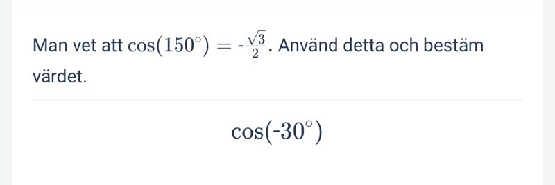 Mha enhetscirkeln kan man se att cos(-30)= sqrt(3)/2