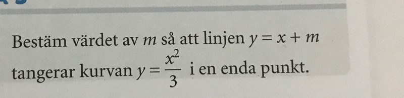 Börja med att kontrollera om du har löst 2:a-gradaren korrekt genom att sätta in dina 2 x-värden. Sen förstår jag inte riktigt på slutet. De frågar efter m och du svarar att x=1,5...