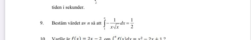 Bestäm värdet av n, integralen