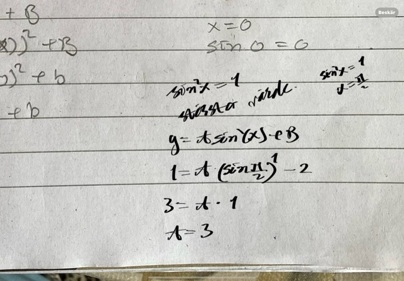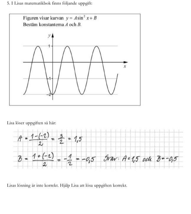Hej, jag har börjat lösa denna uppgift men jag vet inte riktigt hur jag ska fortsätta. Jag har redan bestämt värdet för B men vet ej om det är korrekt. Jag behöver hjälp med att bestämma värdet för A.