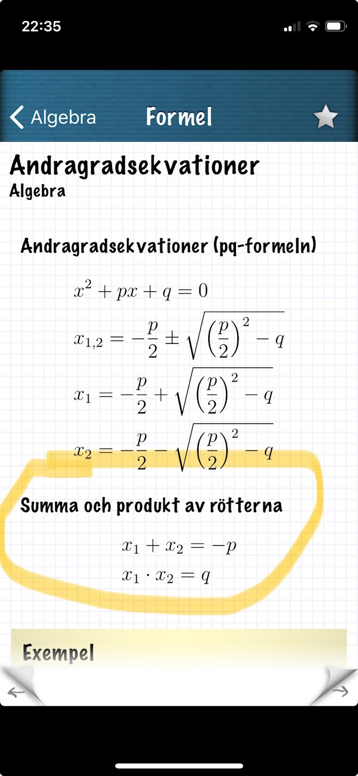 ställde upp det såhär x(x+b) + c = 0 då det stod i början här att man kan använda nollproduktsmetoden om vänsterledet är faktoriserat.
