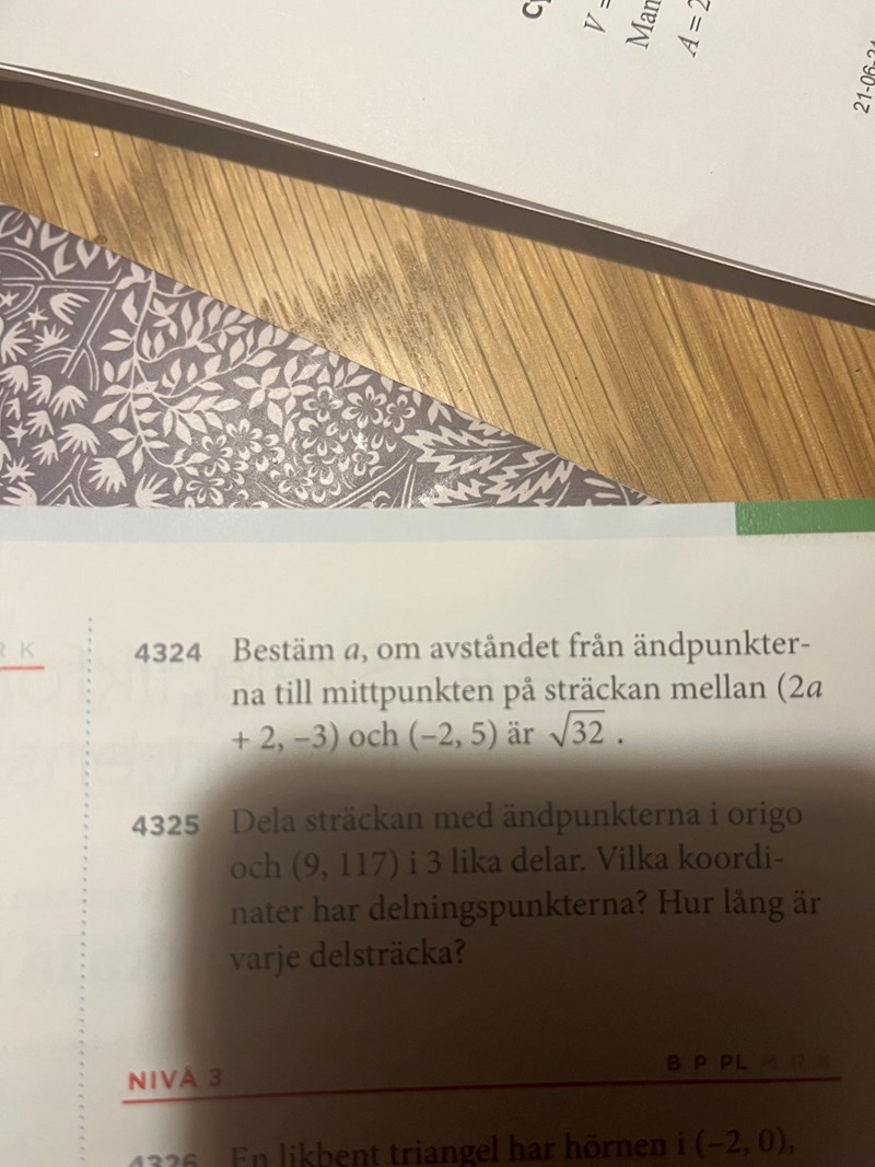 Uppgift 4324. Antar att man ska använda mittpunktsformeln men vet inte hur man ska börja.
