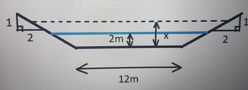 x meters höjd är kanalen ... meter bredare, dvs 12 + ... meter bred.