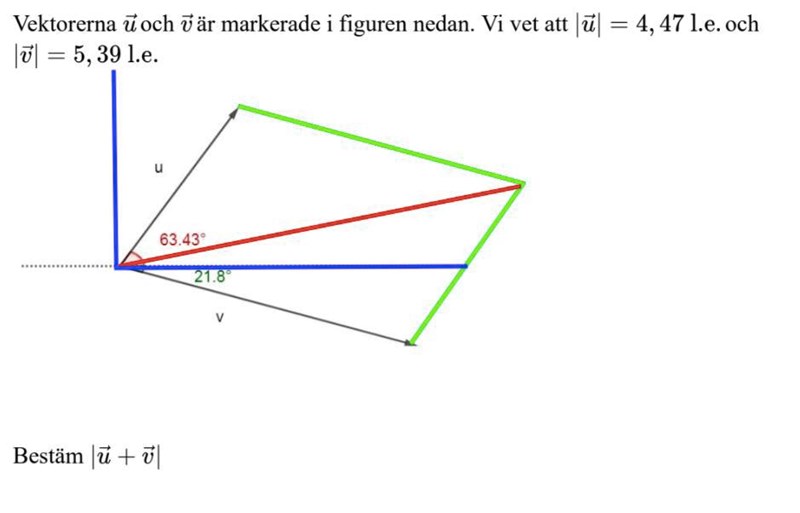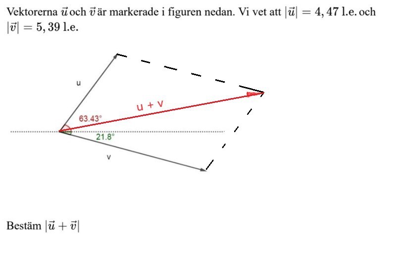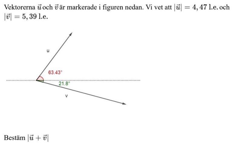Du vet längden på hypotenusan, den är4,47 l.e.