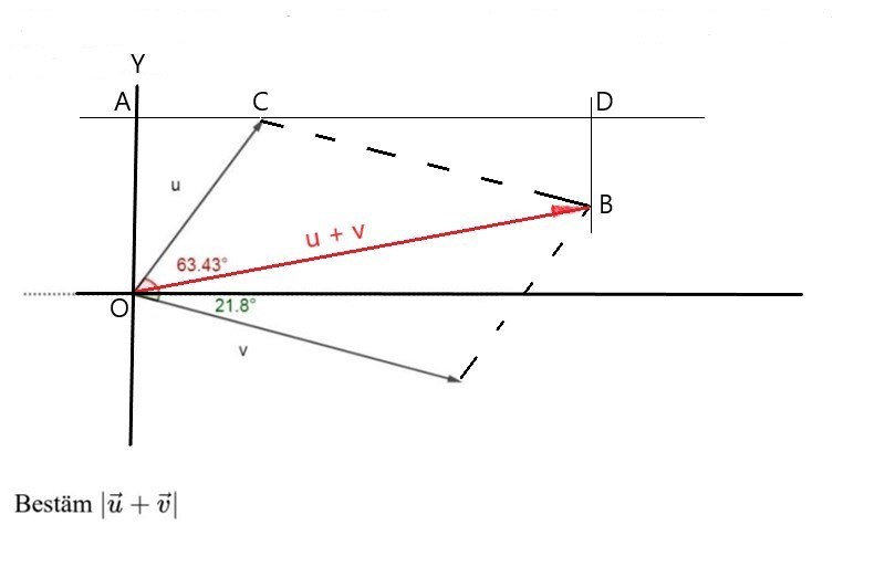 Du vet vinkeln vid O, den är 90-63,43