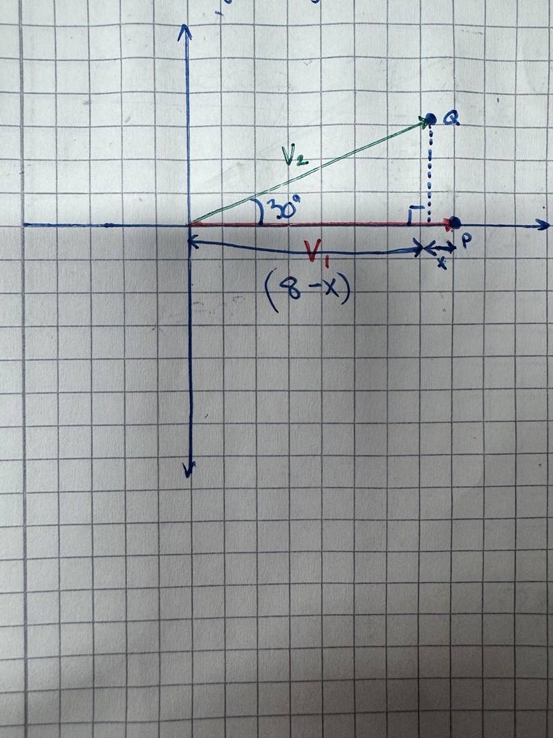 Kan vara fel, men jag tänkte från punkten Q till x-axeln.