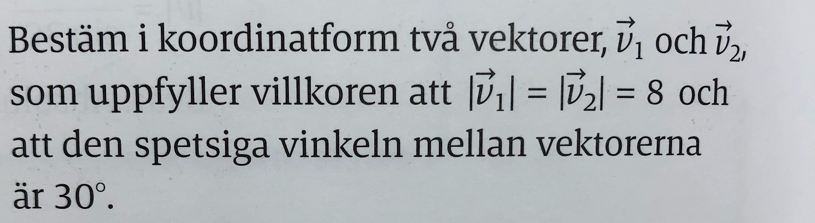 Rita lite i ett koordinatsystem. Jag föreslår att du låter en av vektorerna ligga längs nån av koordinataxlarna.