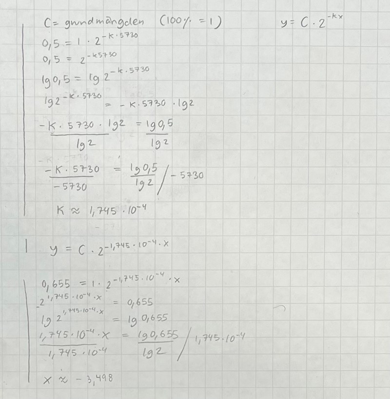 Jag håller på med denna uppgift som du kan se nedan. Nedan kan du även se hur jag löste uppgiften. Jag kom fram till att svaret blev -3,498 men svaret ska bli 3498. Jag undrar vad för fel jag har gjort i min uträkning?