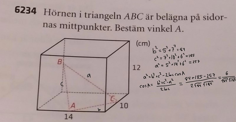 Du hade andra beteckningar på sidorna. Man brukar ha att sidan a är motstående vinkel A, etc.