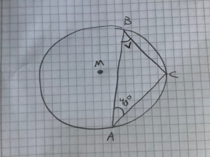 Jag försökte använda mig av AMC men lyckades aldrig lösa ut något. Jag gav svaret v=50˚ Pga C=180/2