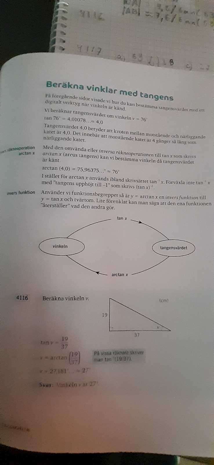 ^ Från Matematik 5000+ 1c, boken brukar ringa in uppgiftsnummret när man får använda miniräknare, konceptet av arctan introducerades just i samma kapitel och täcker ej hur man beräknar arctan, bara vissa samband. Är det ett tryckfel att man inte får ha miniräknare, eller kan jag lista ut svaret på något sätt utan digitala hjälpmedel?