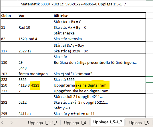 Här är en skärmbild av Natur och Kulturs officiella rättelselistan: