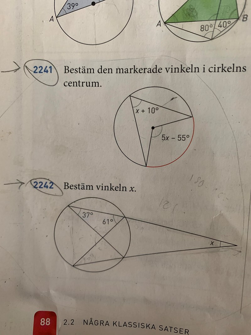 Du kan bl a utnyttja regeln om vinklar på samma cirkelbåge.