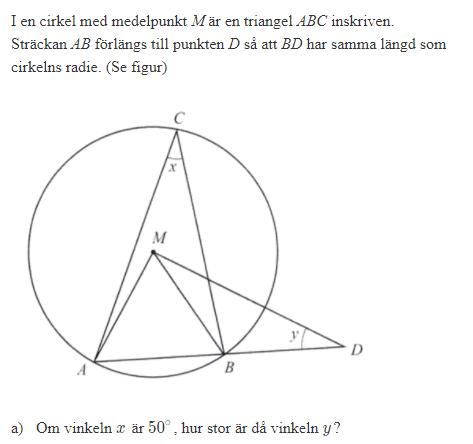 Ledtråd: Hitta en vinkel som är lika stor som y.