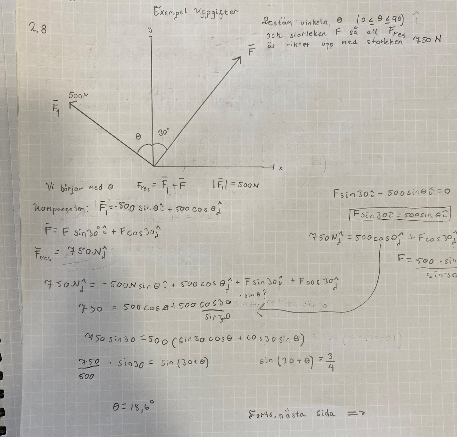 Nej, det ska vara 30+täta, jag tror det är för att det motsvarar vinkeln för kraften för 500N och inte vinkeln för den obestämda kraften