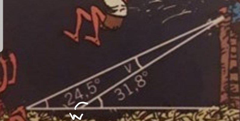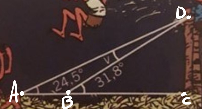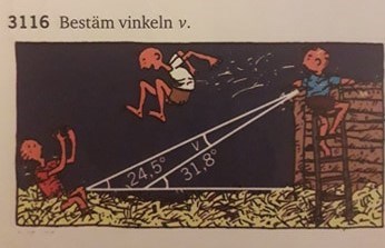 Triangeln med vinklarna v, w och 24,5° har vinkeksunman 180°, vilket ger dig ekvationen v + 180° - 31,8° + 24,5° = 180°, dvs v + 24,5° = 31,8°