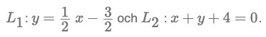 Bestäm vinkeln v mellan L1 och L2