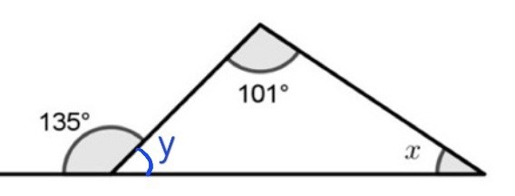 Men du behöver känna till vad summan av vinklarna 135° och y är.