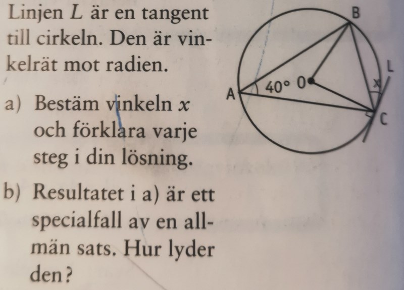 Enligt resultatet i a) så blir vinkel x likadan som randvinkeln.