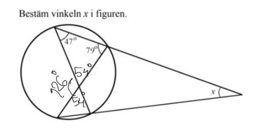 Ser du att det finns en till vinkel i figuren som är 47°?