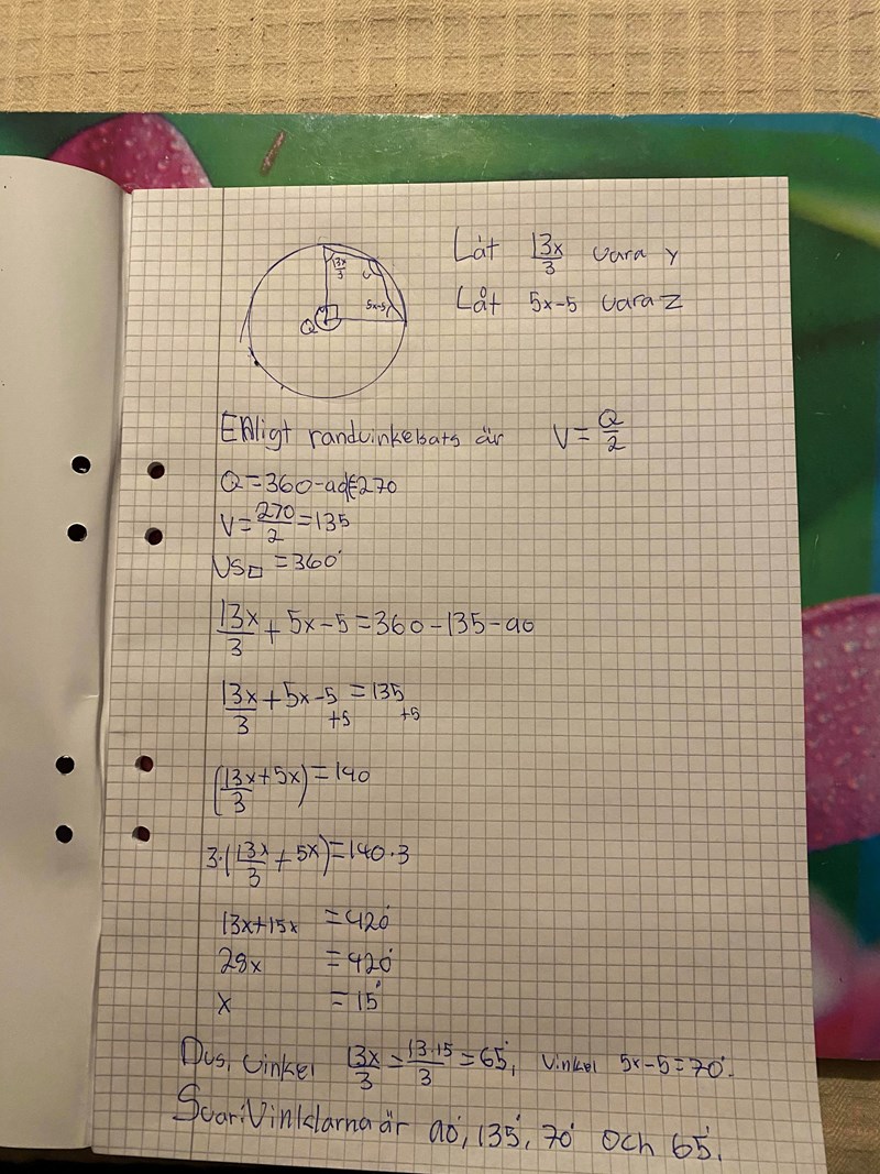 Jag vet inte riktigt om man kan se vinklarna där uppe, men vinklarna är 13x/3 och 5x-5.