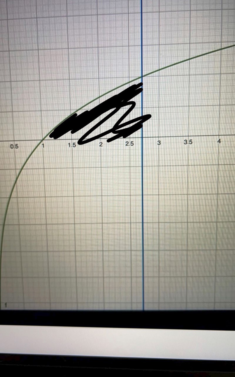 1. Hur löser man ekvationen ln(x)=e ? jag har problem med att lösa den ekvationen? varför är den ekvationen relevant för uppgiften? Vi vill ju hitta integrationsgränsen?