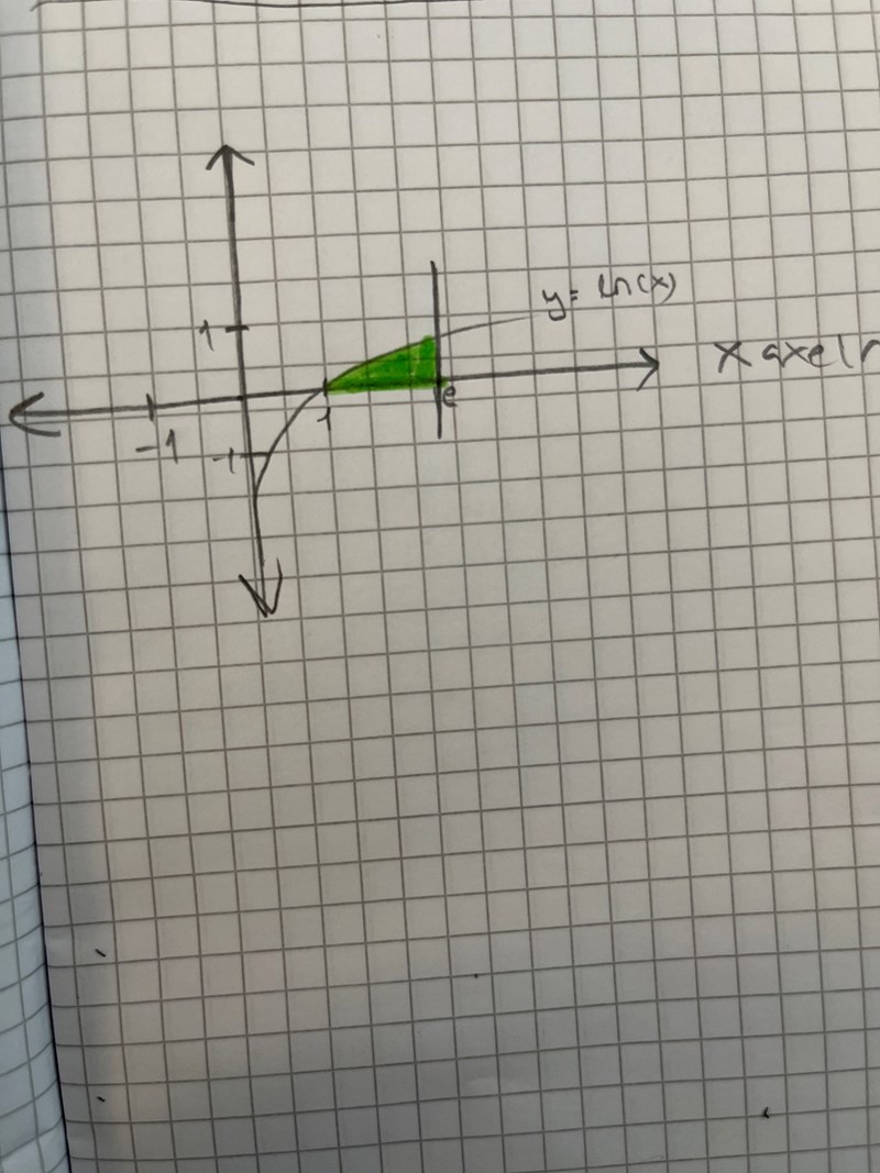 Dvs markera det område som begränsas av x = e, x-axeln och grafen till y = ln(x).
