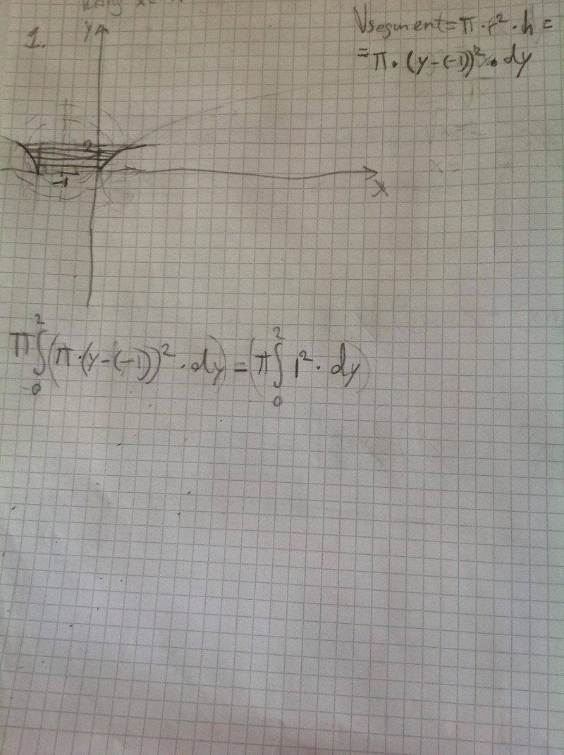 3. Skivorna är orienterade i skal. Därför är integrationsriktningen i y-led och integrationsgränserna är från 0 till 2.