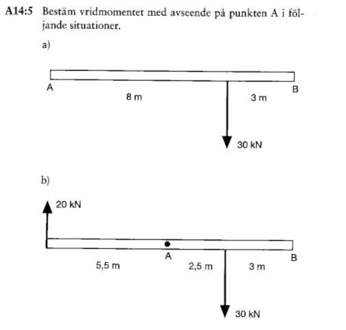 I uppgift a) antar jag att man räknar ut att RA + RB = 30 kN