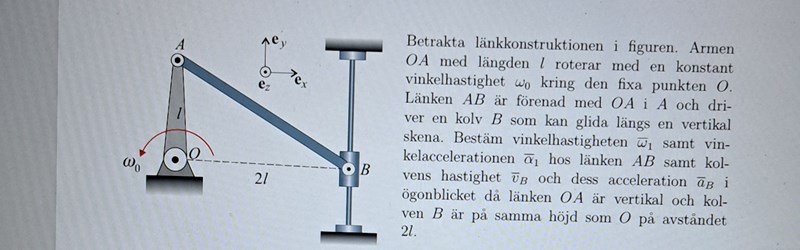 Bestäm w1, alfa1 hos AB vb och a_b då OA är vertikal