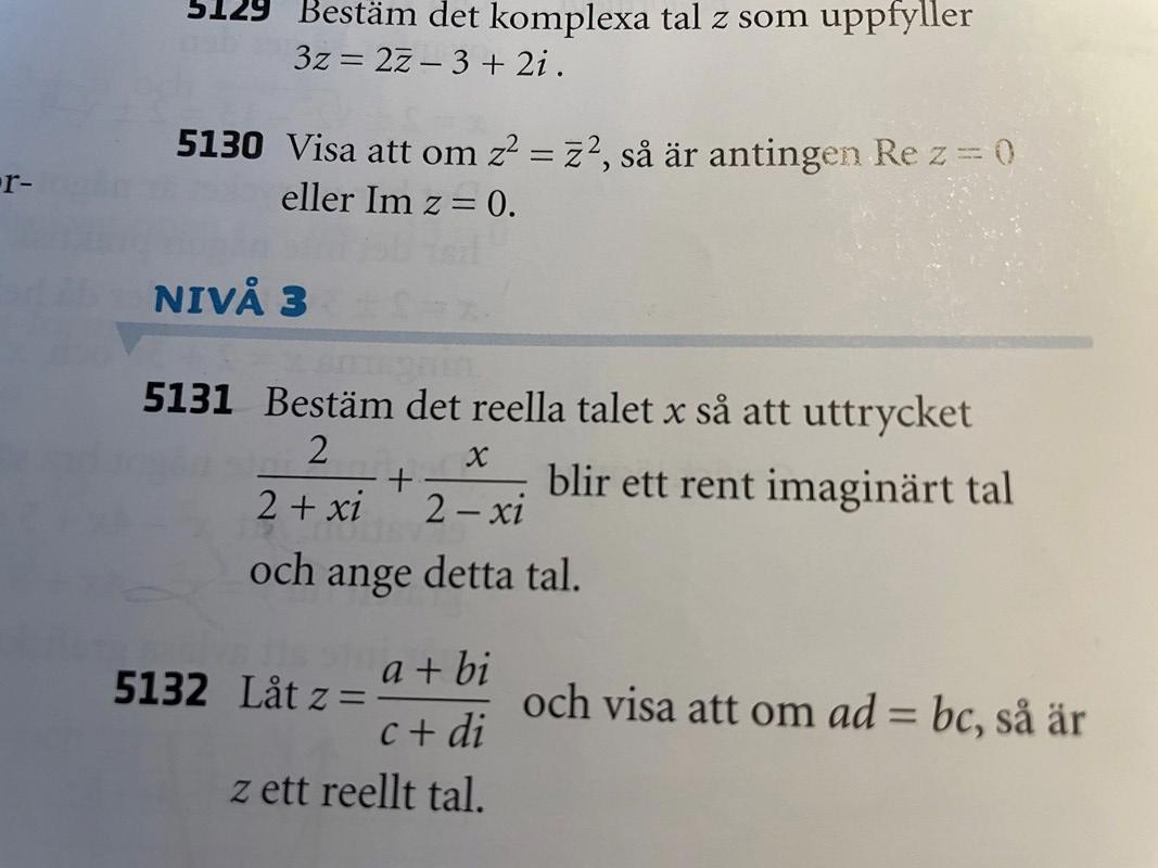 Realdelen skall vara 0 .För vilket värde på x gäller det att 4+2x = 0?