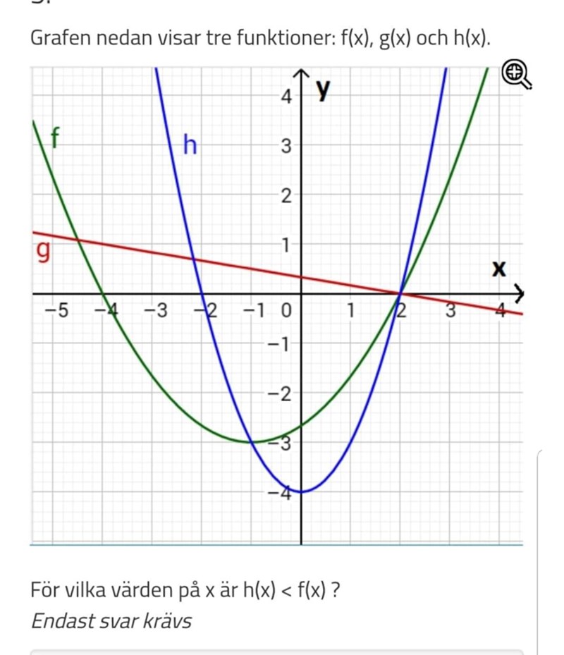 Bestäm x så att h(x)<f(x)