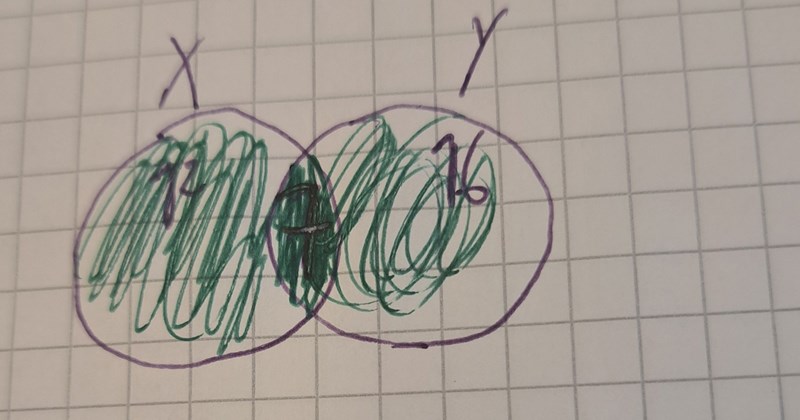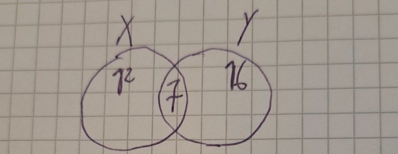 så allt som hör till mängden X men ej mängden Y så är det ju bara 12 samt lite av 7? Jag ser dock inte svaret i venndiagrammet.