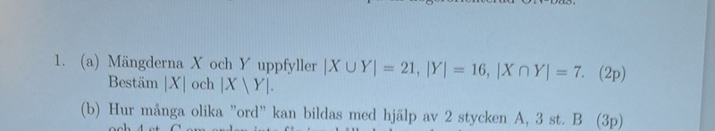 Jaha okej, aa jag förstår. Hur hittar jag |X\Y|?