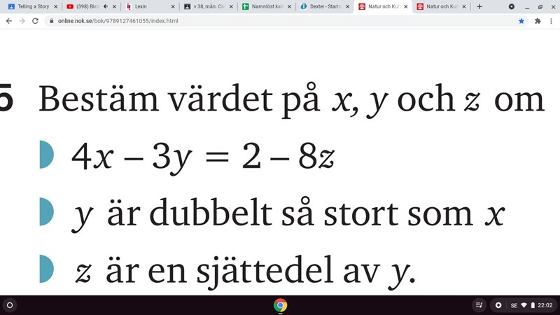 Yngve skrev:OK bra. (Du skulle även bestämma y och z.)
