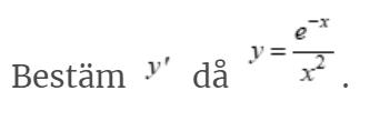 Yngve skrev:En bra metod att kontrollera deriveringen är att skriva om till y = e-x•x-2 och derivera med produktregeln.