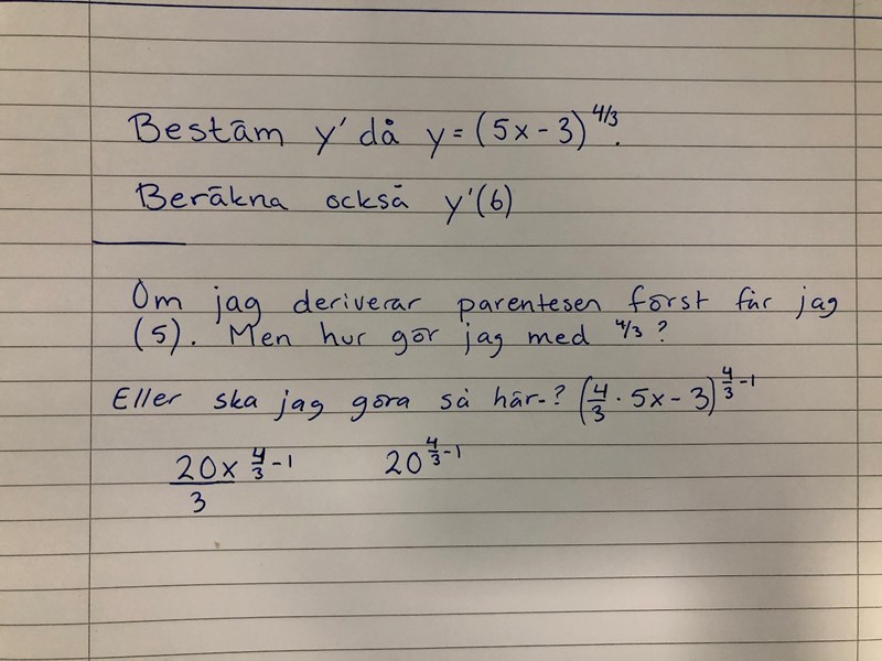 Det viktiga här var att förstå hur kedjeregeln skulle användas för att komma fram till uttrycket för y'(x).