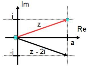 d v s alla tal som ligger lika långt från origo som från punkten z=2i kan skrivas som den räta linjen z=a+i där a är ett reellet tal.