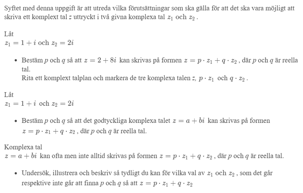 Jag tycker frågan är litet oklar. I del 3, menar de z1 och z2 från del 1?