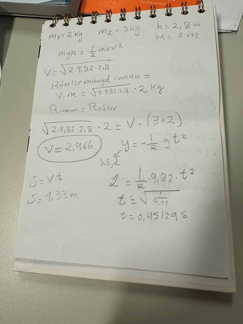 I beräkningen för fritt fall i 1 meter ser ettan ut precis som en tvåa! Du får bättra sifferstilen.