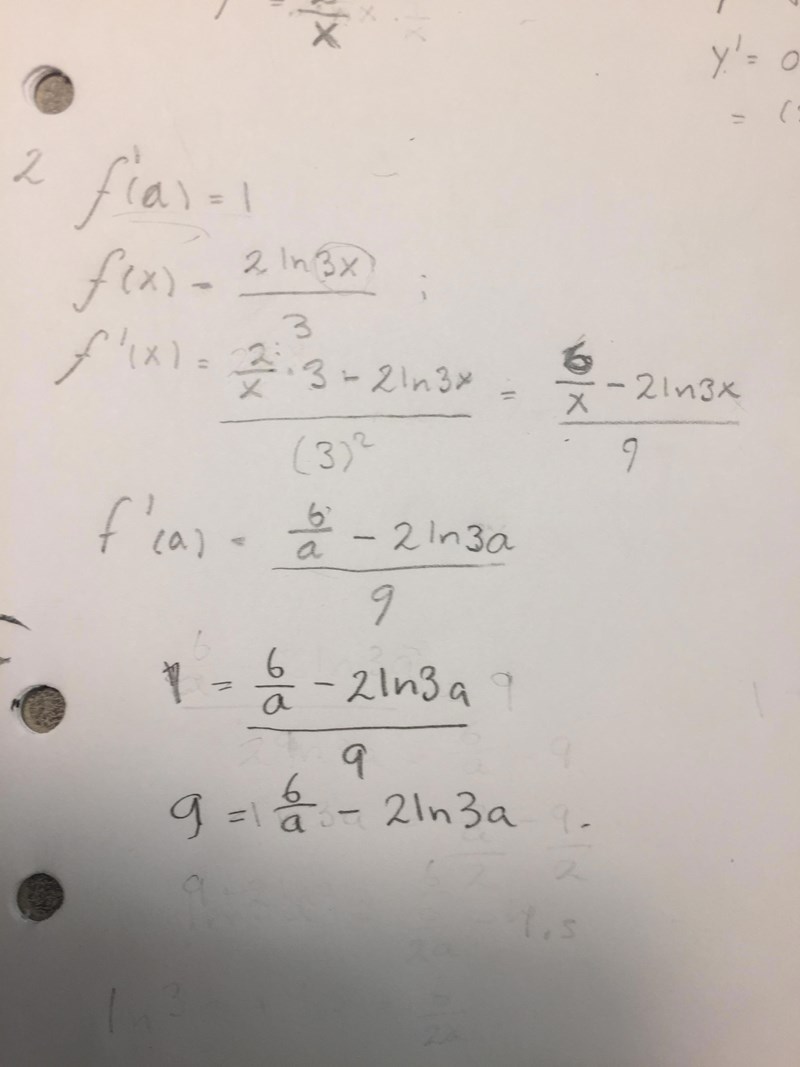 men nu sitter jag helt fast, jag vet inte hur jag ska få ut a eller om jag ens deriverat rätt. Vad är nästa steg?