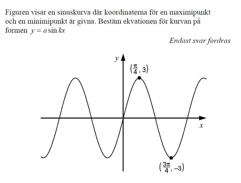 Kurvan är en funktion av typen , dvs. något tal a gånger ett sinusvärde. I bilden ser vi att kurvan når maxvärdet 3.
