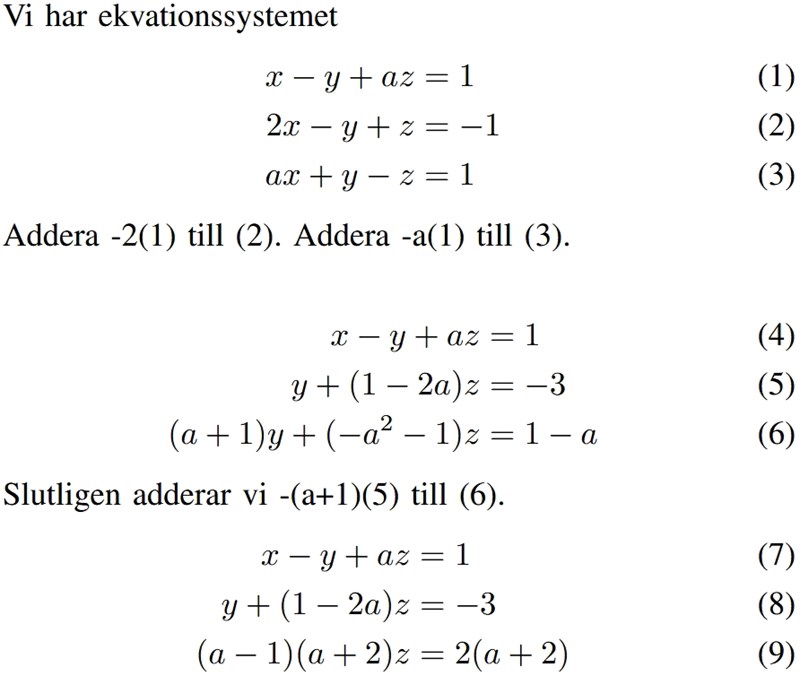Bestäm för varje reellt a antalet lösningar till ekvationssystemet: