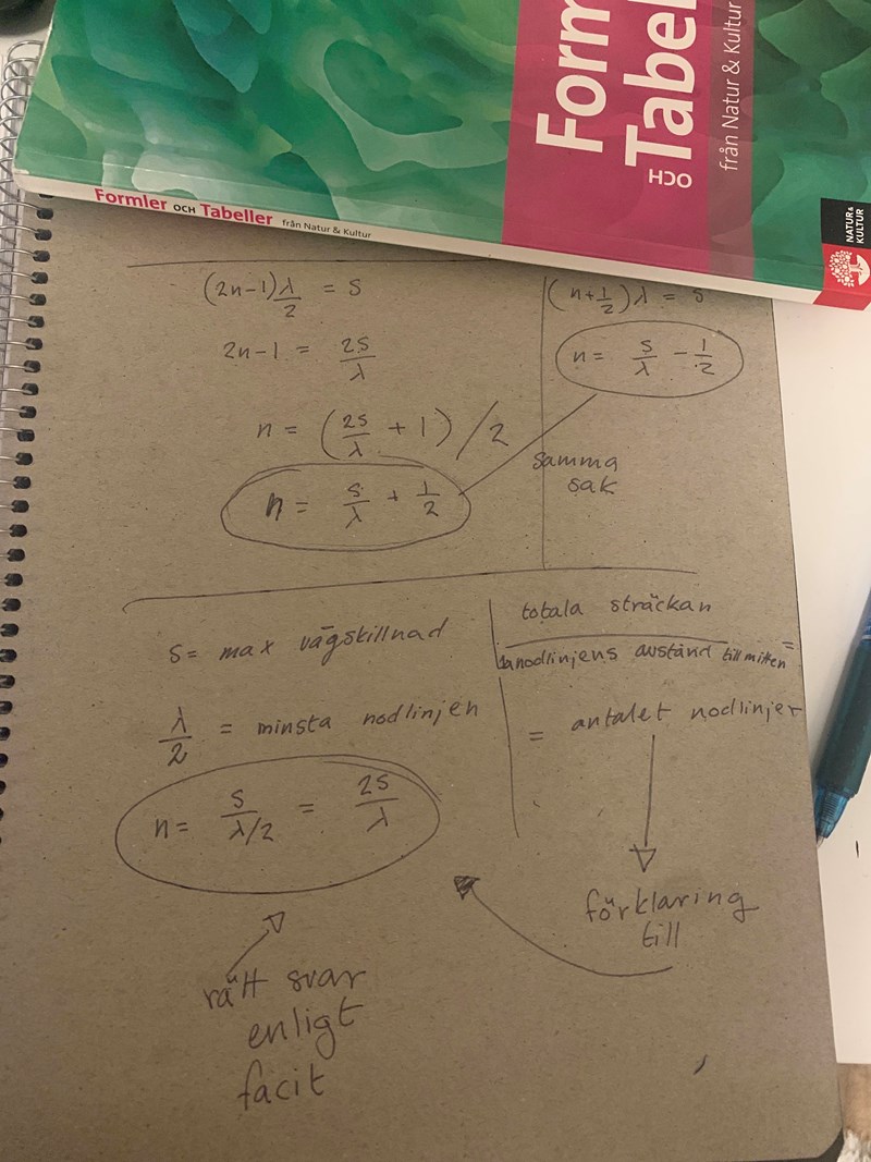 Är det hur facit kommer fram till avståndet mellan nodlinjerna du inte fötstår?