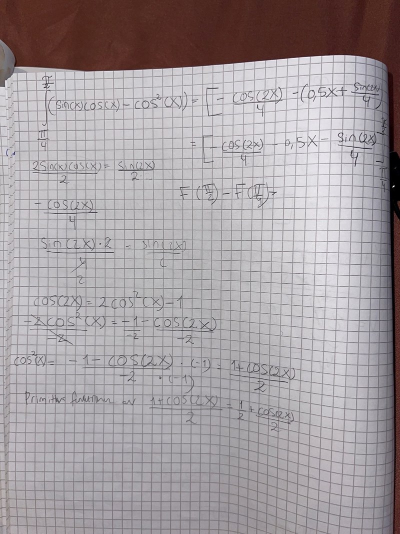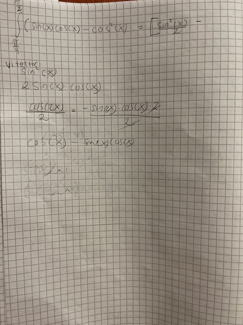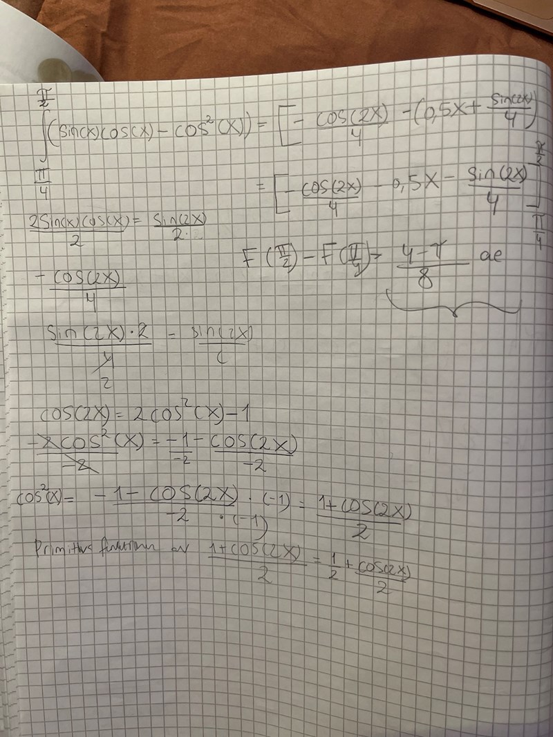 Hur får jag fram den primitiva funktionen av sin(x)cos(x)-cos2(x)?