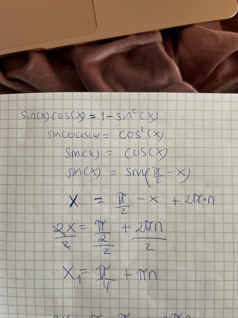 sin(x)cos(x) = cos2(x), subtrahera cos2(x) i bägge led