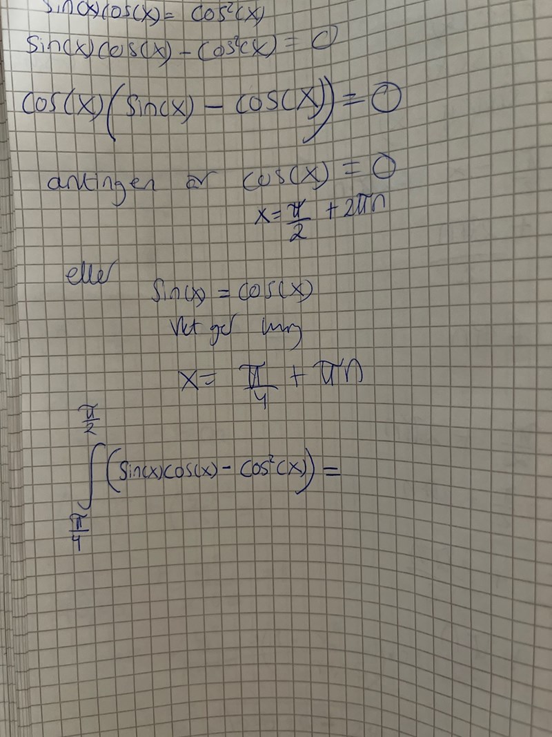 sin(x)cos(x)-cos2(x) = 0, bryt ut cos(x) i VL