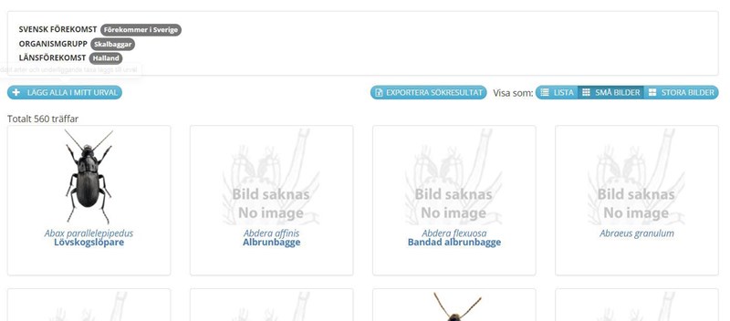 (De som inte har thumbnails har generellt massa bilder på artportalen tex https://www.artportalen.se/media/taxon/102327 så om man snävar in sökningen kan man gå in och kolla på dem. Den är bara lite svårare att söka i)