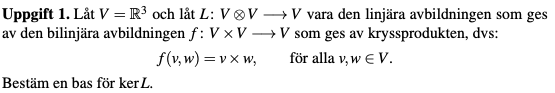 Så om vi kan hitta 6 linjärt oberoende vektorer i tensorproduktrummet som ligger i kerL så måste de vara en bas för kerL.