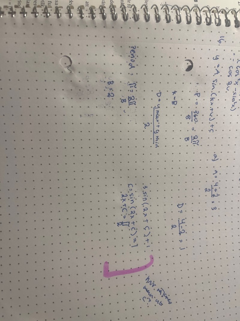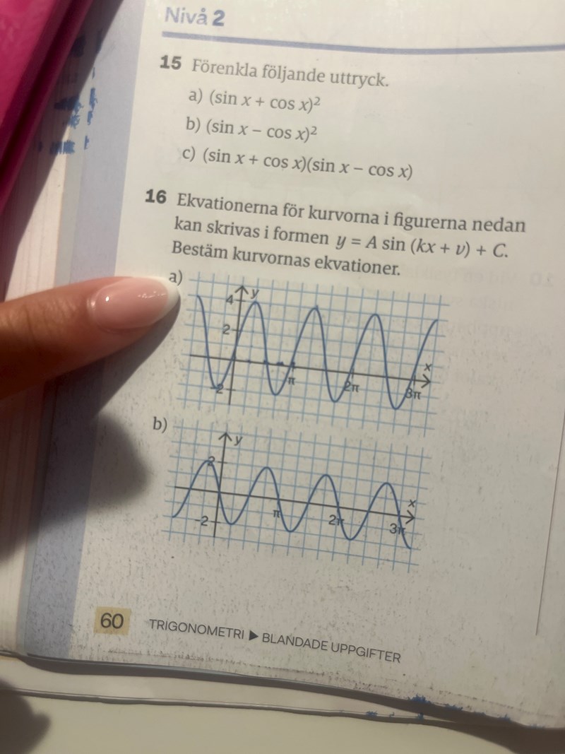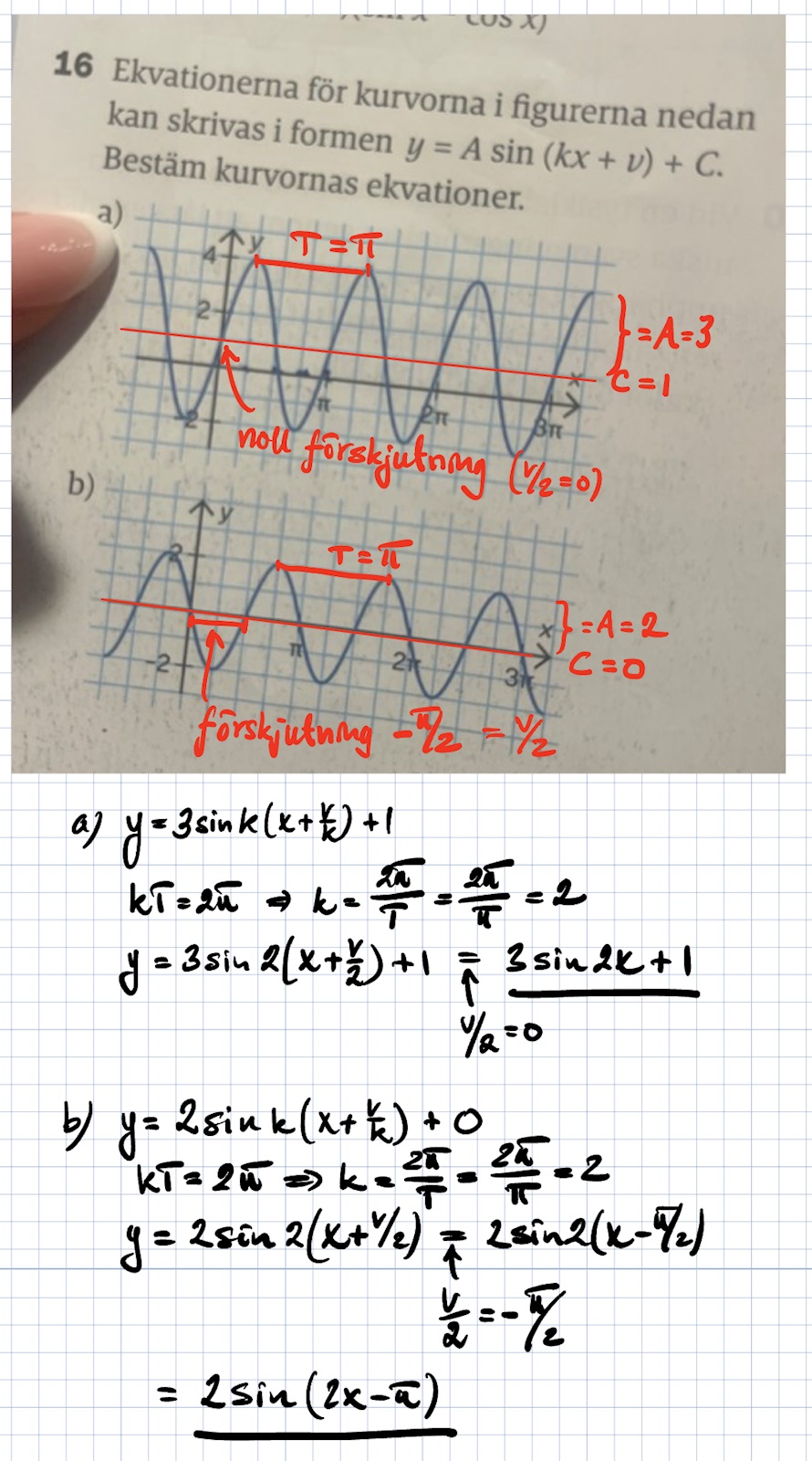 Jag vet inte riktigt hur jag ska bestämma C genom att kolla på grafen. För jag vet ju att sin (2x + C) = 1.Uppgift16a